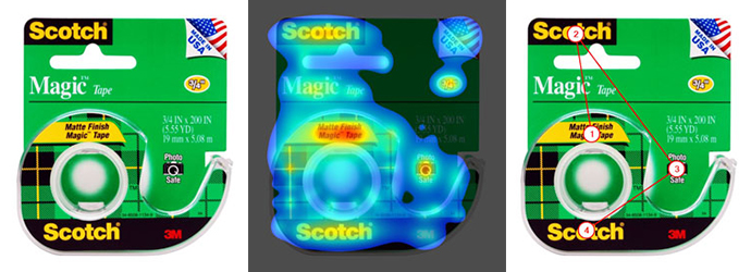 3M社が提供しているVASというソフトウェアは、パッケージ、広告等、様々なデザインの視覚的な効果を評価するウェブベースの解析ツールです。人が最初の3~5秒間で注意を引かれる要素を高い精度で予測するもので、アイトラッキングなどのユーザー調査で実際に人の視線データを得る方法と比較検証の結果、85%以上の精度で一致することが実証されているそうです。